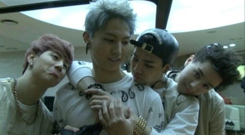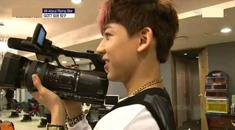졸고있는 갓세븐 유겸과 카메라를 들고 있는 갓세븐 뱀뱀