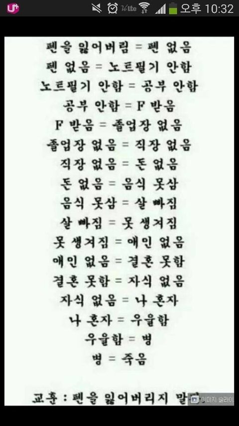 수업시간에 펜없으면 선생님이 맨날 넌 지금 전쟁에 총안들고 간거라고 그랬는데ㅋㅋㅋㅋ