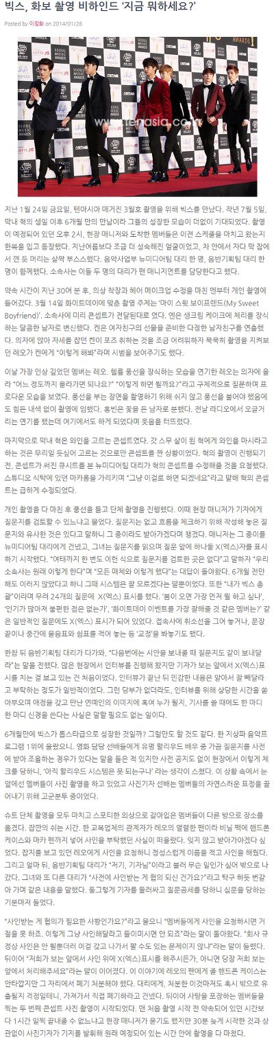 얼마전에 텐아시아 촬영후 기자분께서 올리신 SNS와 그뒤에 올라온 기사 때문에 젤리피쉬 소속사 팬매니저의 태도에 대한 논라이 있었음. 소속사의 사과와 피드백을 기다리던 팬들과는 달리 방금전 기사가 하나 뜸.