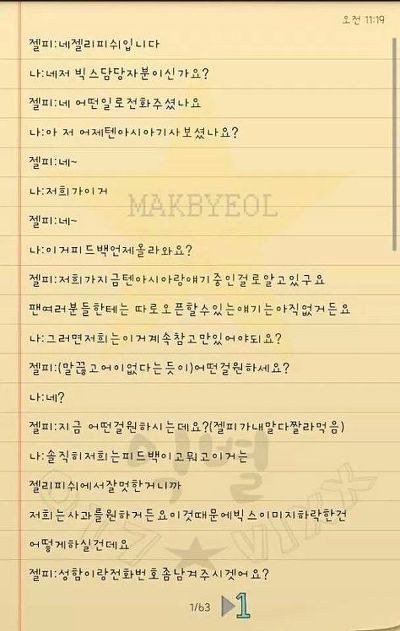 이걸 본 별빛들은 더욱 분노함. 다른 별빛도 전화를 했으나 설휴가라고 자리에 없다고함...ㅋ..