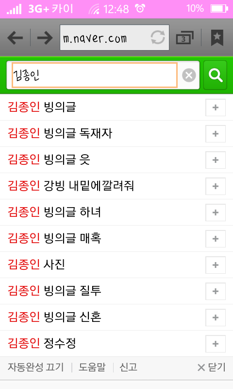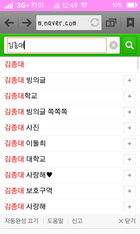 근데 그중에 종인이가 본명으로 초록창에 치면