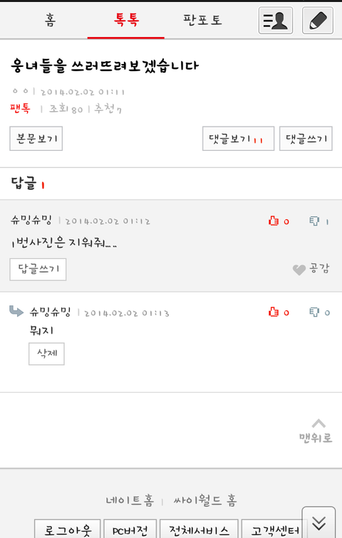팬톡 검색 보기