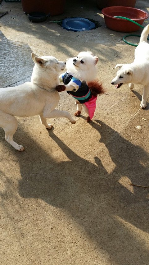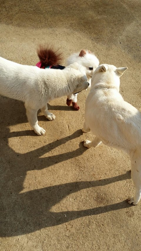서로 탐색전중ㅋㅋ혹시라도 물까봐 걱정했는데 그런거없이 아주잘놀았음