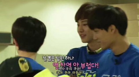 그리고선 자기차례 되니까(장갑 낀손이 카이손) 공들고 나오면서 하는말