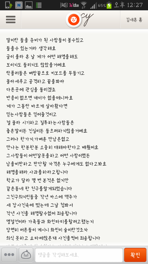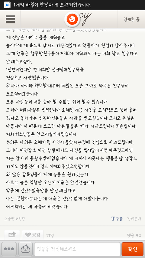 솔직히말해서 얘가 잘못한점도있긴한데 애를 너무 왜곡시키고 죽을만큼큰잘못한것처럼 몰아세우지말자 . 별그대 보고느낀건데 내가 잘알지도못하는이야기 막얘기하면 그연예인이 얼마나 힘들겠냐