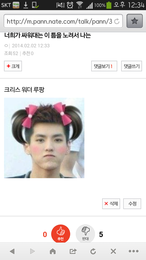 도경수팬들아 도경수팬욕하는거에 비추폭탄좀넣자