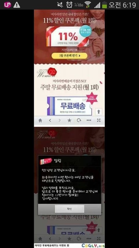 11번가 주 고객층이 여성인가보지 회사측에선 주 고객층을 대상으로 특혜주는게좋겠지 그래야 매출올라가니까. 매출 별로 안올려주는 남성고객에게도 혜택을 동등하게준다면 11번가는 배송비만 날리는셈.