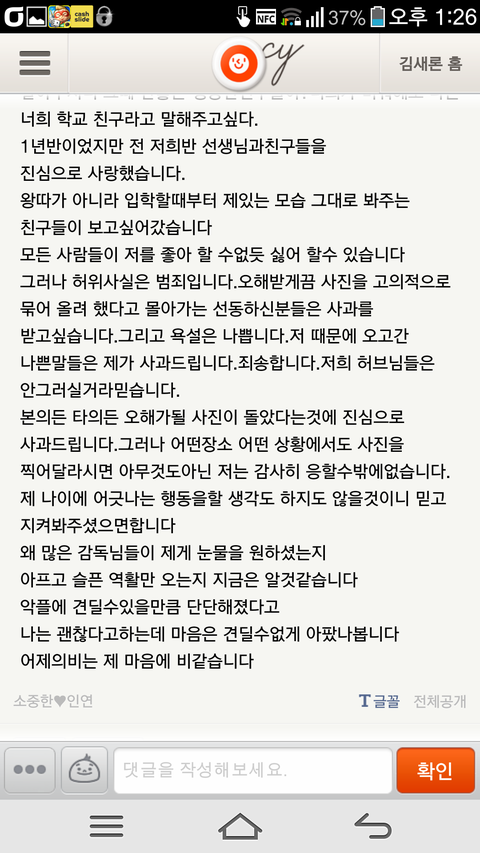 사진有)김새론 해명글올라옴
