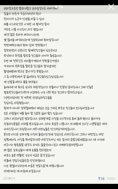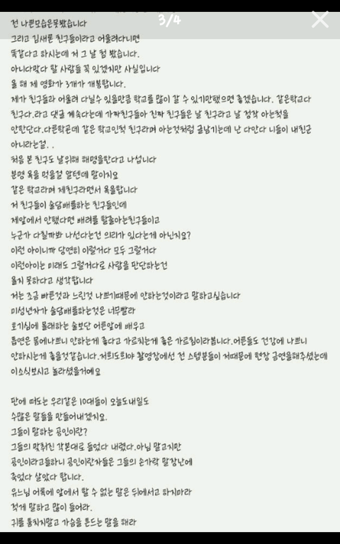 15살이 써서 진실성도 없습니다 님이 아역배우고 공인인데 이런상황이라면 해명글 쓸때도 손이 부르르 떨릴텐데 이정면 잘쓴거예요