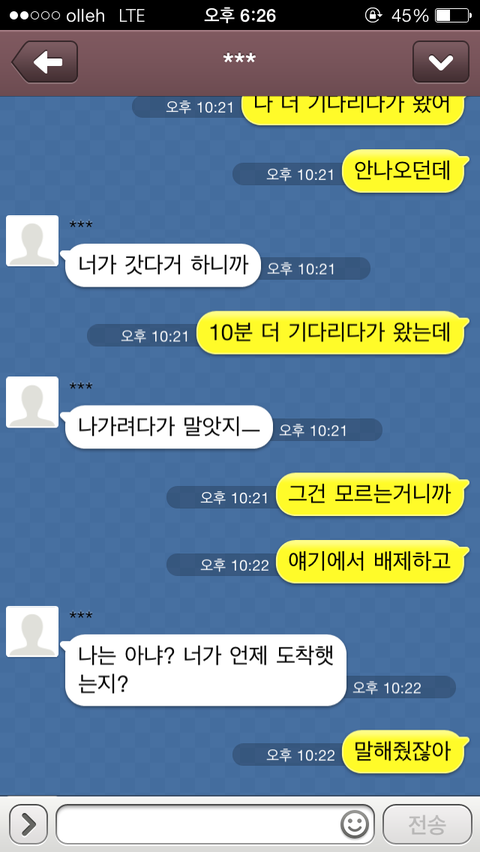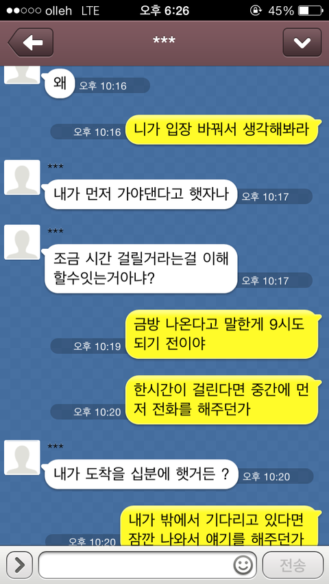 다름이 아니라 여자인 친구(여친x)와 약속시간에 늦는 문제 때문에 사소한 다툼이 있었습니다.