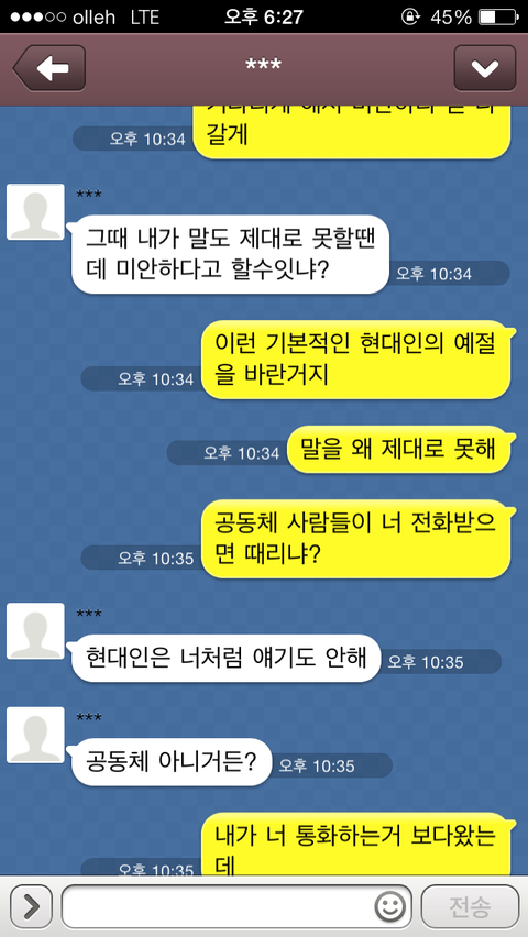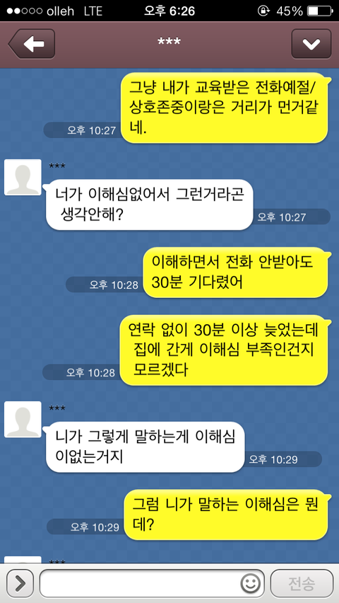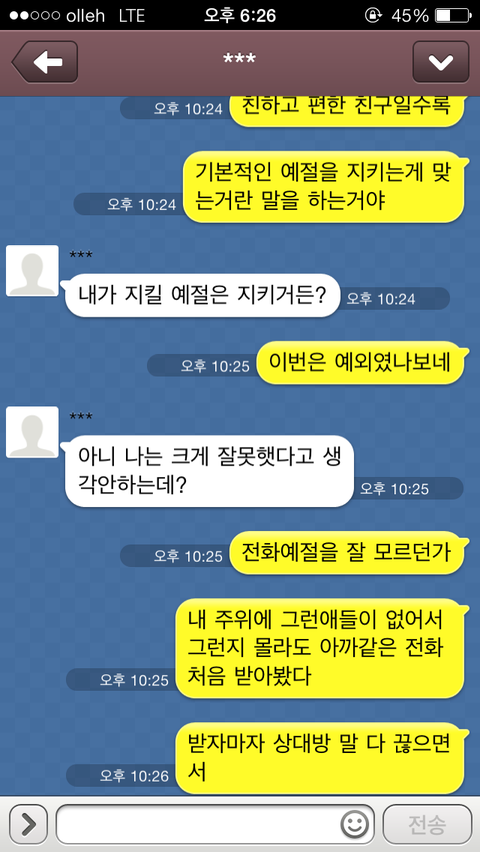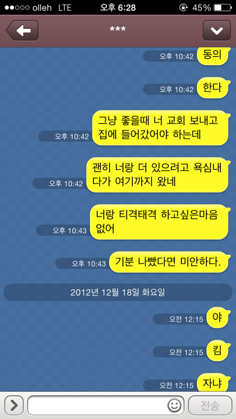 "이런 문제가 아직도 이해가 안되고 아직도 사과 할 마음이 없다면 앞으로 너를 볼 생각이 없다"