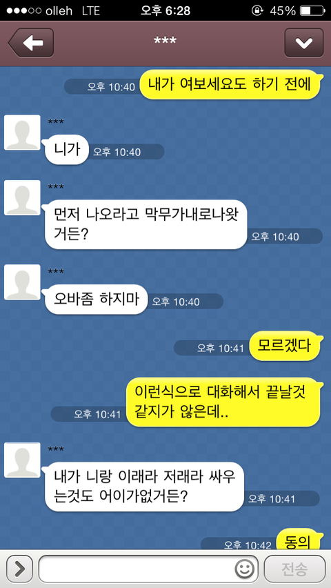 이미 서로 기분은 상한 상황이지만 여러분의 의견을 좀 듣고 싶습니다.