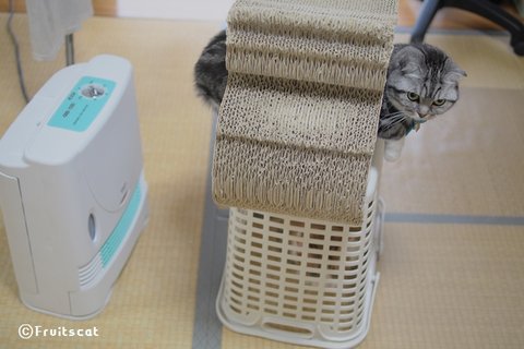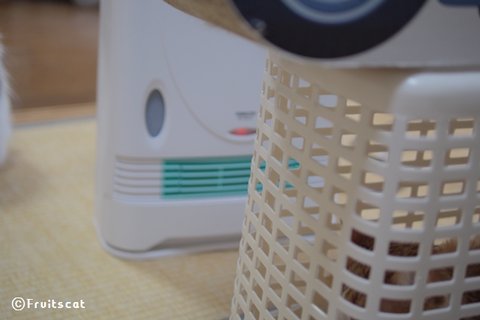 히터 앞에 빨래 바구니를 뒤집어서 탈출의 명수인 유봉이라 바구니 위에 무거운 스크래치를 올려놨습니다.