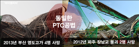 PTC 공법은 이미 2012년 파주 장남교 붕괴 때에도 위험성이 드러났습니다. 당시에도 상판이 무게를 견디지 못해 무너졌고, 건설 노동자 2명이 사망하고 12명 이상이 부상당했습니다.