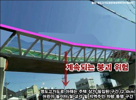 당시 이 지역 주민들은 거주지를 통과하는 영도 고가도로가 소음,분진,위험을 초래하기 때문에 고가 도로가 아닌 지하차도로 건설해달라고 요구했습니다.