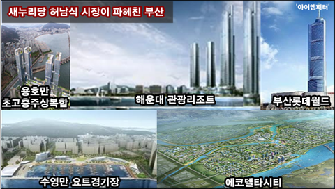 그동안 허남식 시장이 벌어 놓은 부산 개발 사업만 보면 '부산 롯데월드(롯데타운),해운대 관광리조트, 용호만 매립지 초고층 주상복합,수영만 요트 경기장, 에코델타시티 개발 등 헤아릴 수 없을 정도입니다.