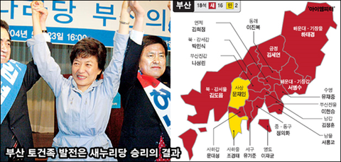 부산은 새누리당의 텃밭입니다. 부산 지역 국회의원은 새누리당이 총 18석 중의 16석을 보유하고 있습니다. 부산시 광역의회는 새누리당 의원이 44명, 민주당은 단 2명에 불과합니다.