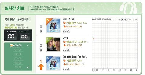 게다가 20위권안에 2곡 더 있음. 총 5곡의 겨울왕국 OST가 20위권안에 있단말이다!!!!ㄷㄷㄷㄷㄷ