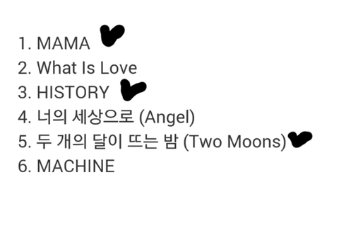 machine,너의세상으로,what is love파트별가사는all이라고햇는데세훈이오징어목소리는들릴기미가안보인다.....그냥베돈크처럼수호백현찬열디오만노래햇다고하지...