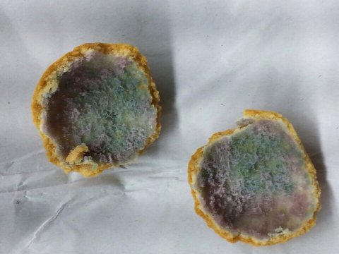 화과자 안쪽에 생긴 온통 초록색 곰팡이 발견 ..