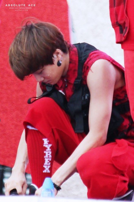 어느 여름날 공연하다가 땀이 많이 났던 김종인
