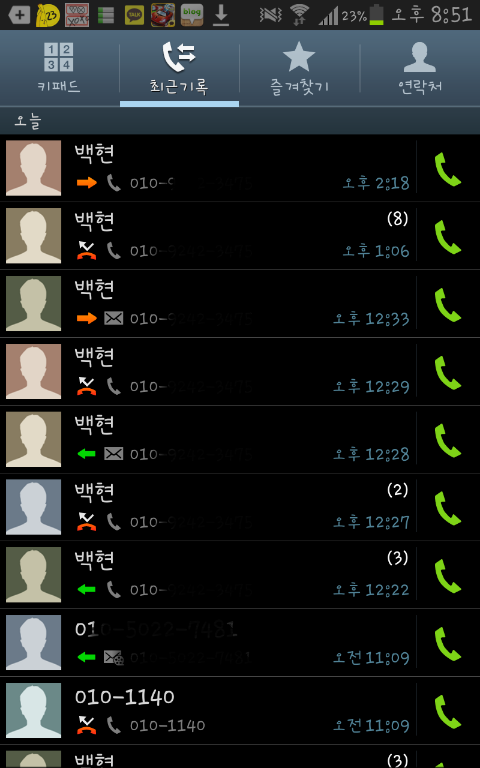 친구야...고맙다...너가 이렇게 전화해줘서 전화목록 들어가봤는데....