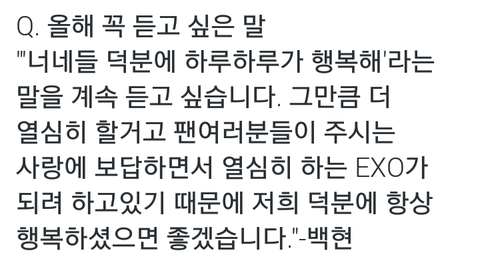 당연하지~ 진짜 너희를 알게되서 너무감사하고 너희덕분에 하루하루가 소중하고 행복해♥ 엑소가 짱이야!!