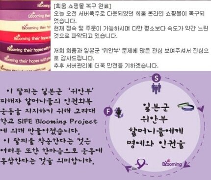 다들 아시겠지만 바로 위안부할머니분들을 돕기 위해 만들어진 '의식팔찌'입니다.