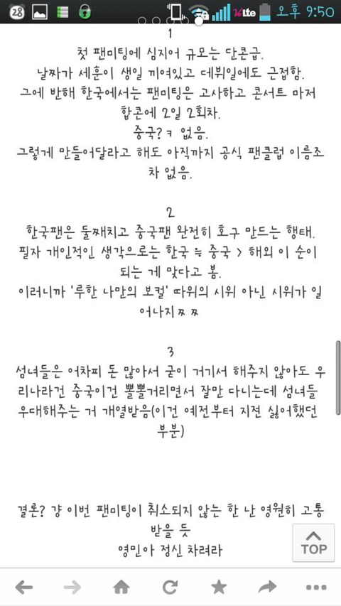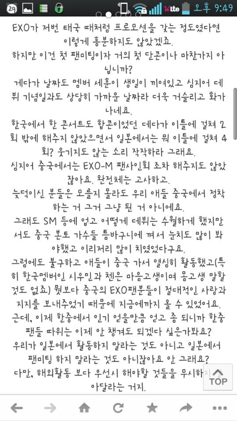 아니 정말 팬미팅을 하지말라는게 아니잖아요 지금 하는데 한국 중국이 우선아닌가요??