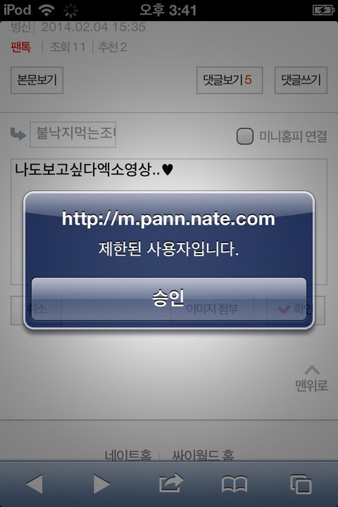 댓글써지고 정지풀렷다는 럽비비씨말을듣고는 나도 시도해보앗지만 역시나ㅋㅋㅋㅋㅋㅋㅋ