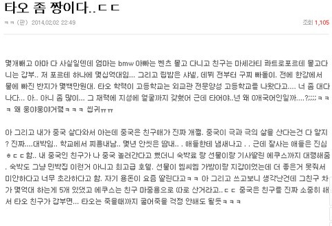 홍콩대 구씹 홍콩대가 그렇게 들어가기 쉬운줄 아냐? 그리고 진짜 중국에서 부자인애들은
