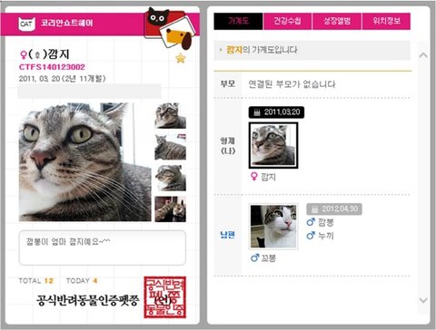 여러분 고양이, 강아지들도 펫쯩 하나씩 만들어주세요^^