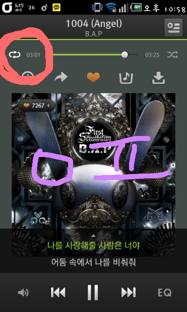 저 빨간동그라미 눌러서 전곡반복하고 자는거