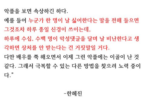 악플을 극복하는 방법을 배웠어요.