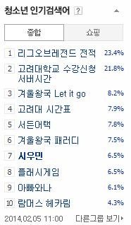 140205 11시 네이버 청소년 인기검색어