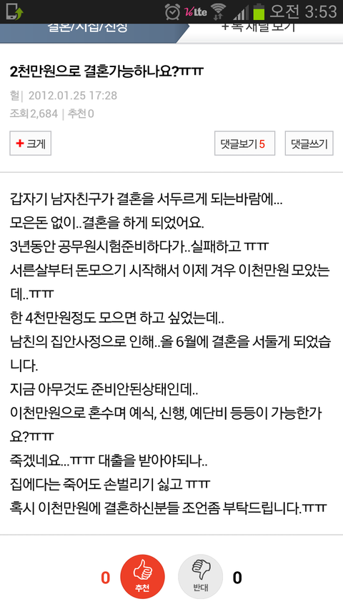 조언 구할 곳은 없고;; 웨딩카페에도 글 올려보고
