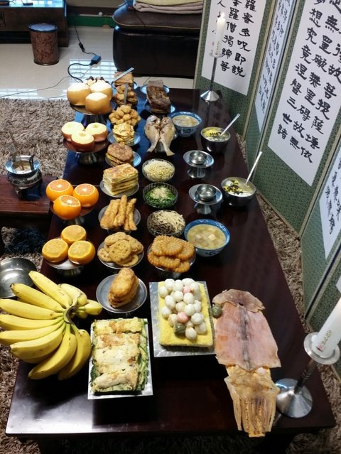 차린 제사상이에요.