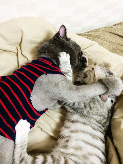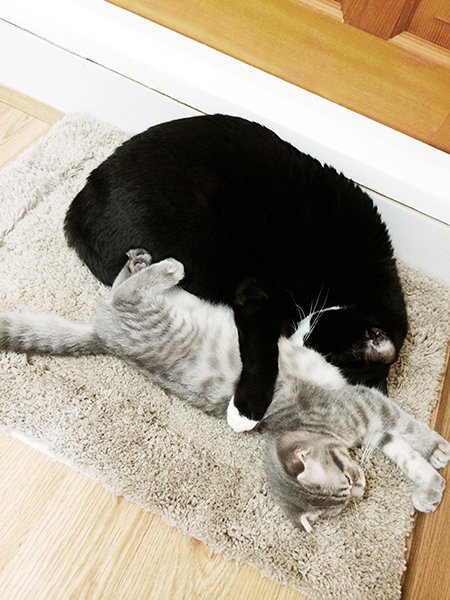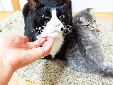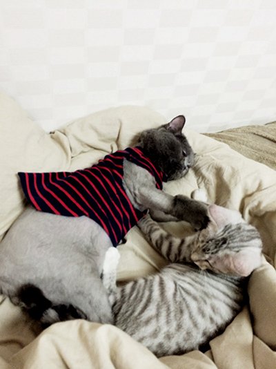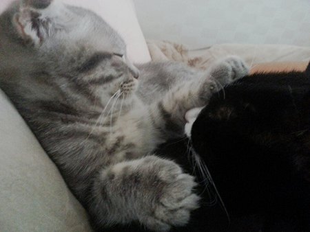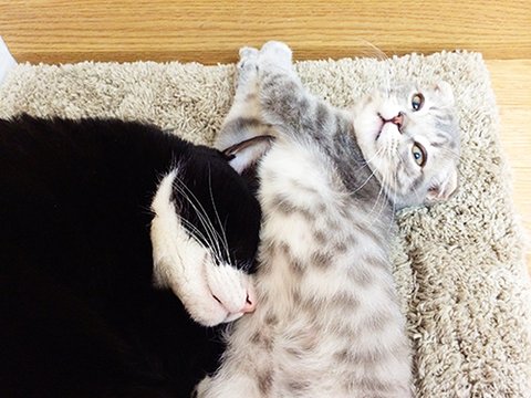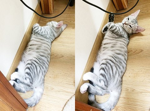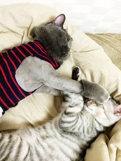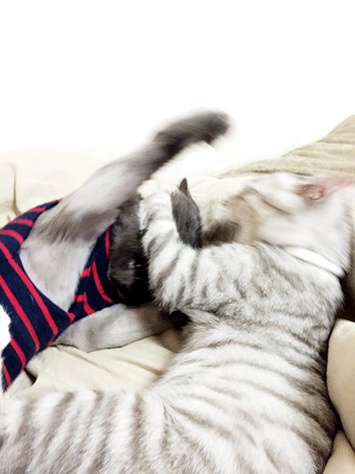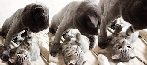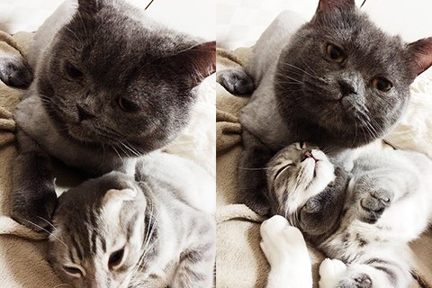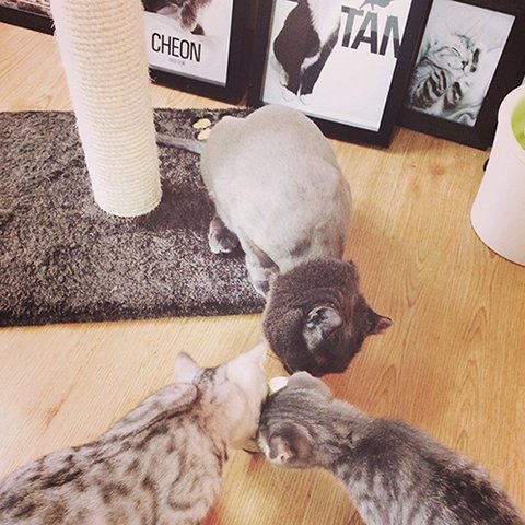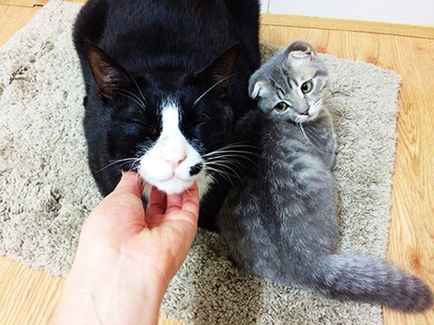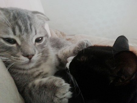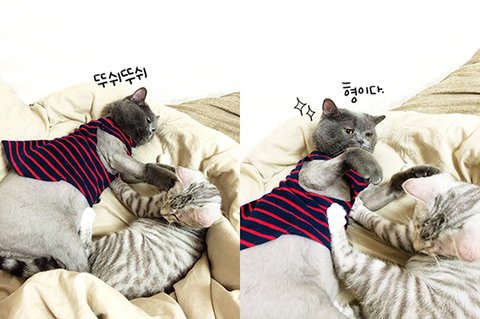상황설명: 천이가 과격하게 머리를 흔들며 필이를 그루밍 해주다가 >>