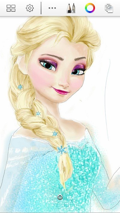 여기까지 겨울왕국 엘사 노트3 스케치북으로 그려봤습니다!!