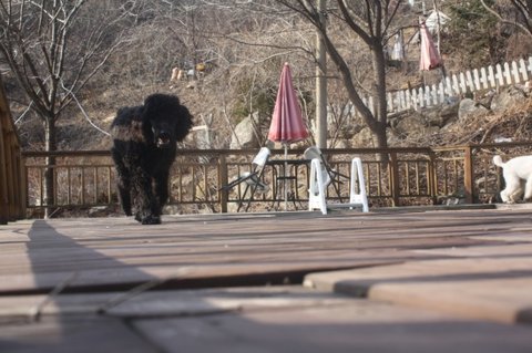 펜션 개 다됨. 다른 손님이나 낯선 무언가가 오면 짖어보고 반가워하는