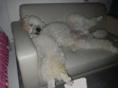 동네 비숑 동상이 빡빡 헐벗은 채로 놀러왔어요.