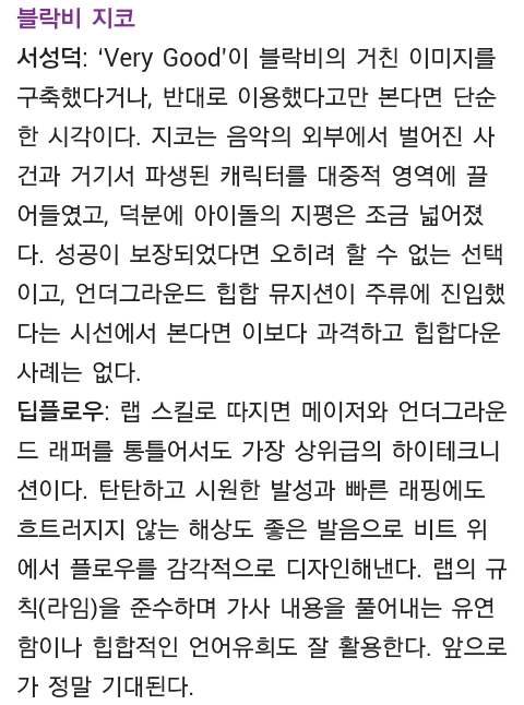 방탄소년단 오피셜 트위터에 랩하는 아이돌에 대한 전문가들의 평가를 실어놓은 기사가 링크되어 있길래 지코에 대한 평가도 있어서 가져와봤습니다