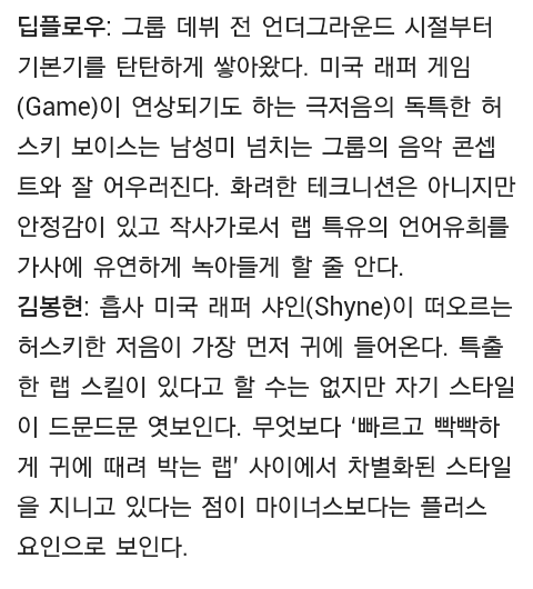 방탄소년단 오피셜 트위터에 랩하는 아이돌에 대한 전문가들의 평가를 실어놓은 기사가 링크되어 있길래 방용국에 대한 평가도 있어서 가져와봤습니다