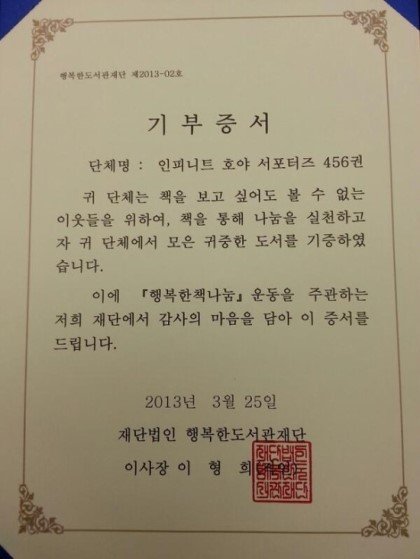 7.호야(인피니트 호야 서포터즈) -행복한 도서관 재단 책 기부