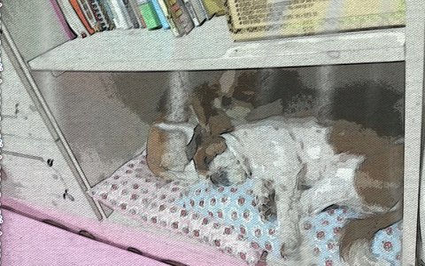 원래 책장이었는데 맨 밑칸에 책들을 다 물어뜯어놔서