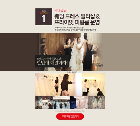 국내유일 웨딩드레스 멀티샵&프라이빗 피팅룸을 운영하여