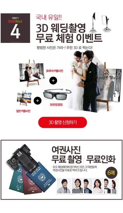 3D웨딩촬영을 체험할수 있으며 3D 안경까지 드립니다.