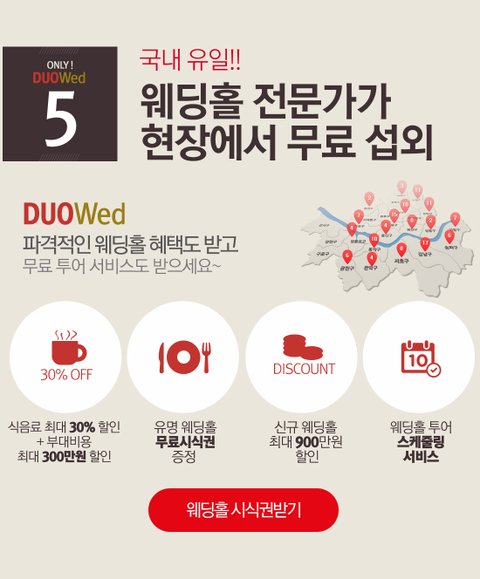 파격적인 웨딩홀 혜택을 누려볼 수 있는 절호의 찬스!