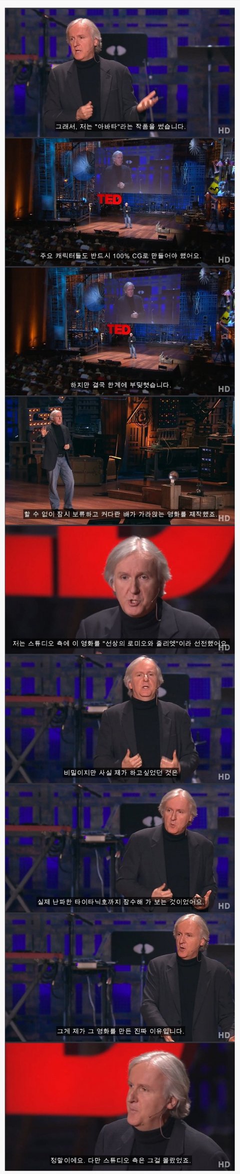 타이타닉,아바타,터미네이터 등등 우리가 많이 알고있는 영화가 제임스카메룬감독이 만든거 솔직히 우리나라도 저런 감독 많아졌음좋겠다