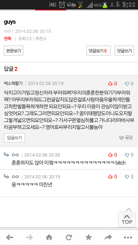 저기댓글에 영어보이지 ? 저거 뜻 암캐 개같은년 이런뜻이야 . 얘네진짜미친거같다